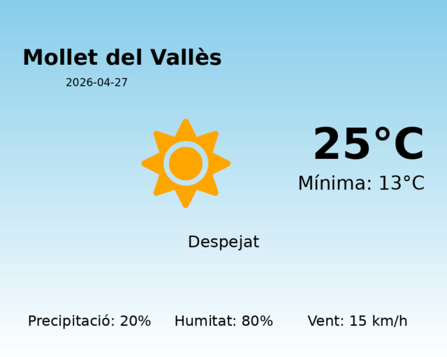 Bon dia, residents de Mollet del Vallès. Avui, 27 d’abril de 2026, el temps promet ser força variat, així que us recomanem estar preparats per a canvis dinàmics a les condicions meteorològiques. A continuació, us proporcionem els detalls de la previsió per al dia d’avui.