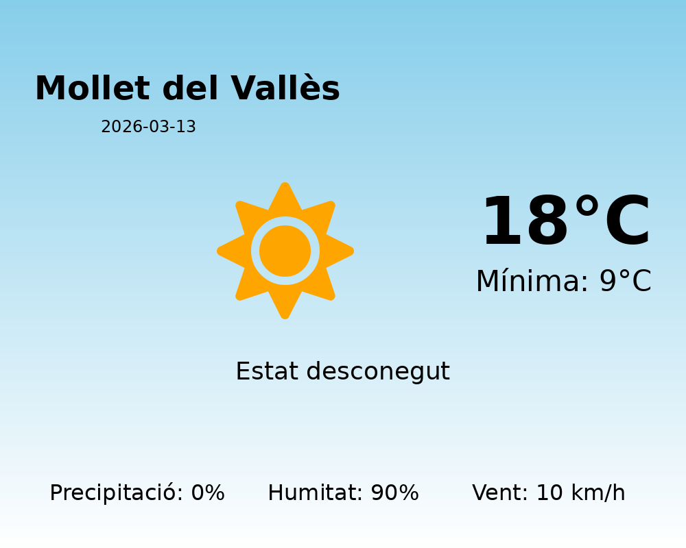 Bon dia a tothom! Avui, 13 de març de 2026, us portem la predicció meteorològica per a la ciutat de Mollet del Vallès. Prepareu-vos per a un dia que trobarà un bon equilibri entre temperatures agradables i un ambient bastant humit.