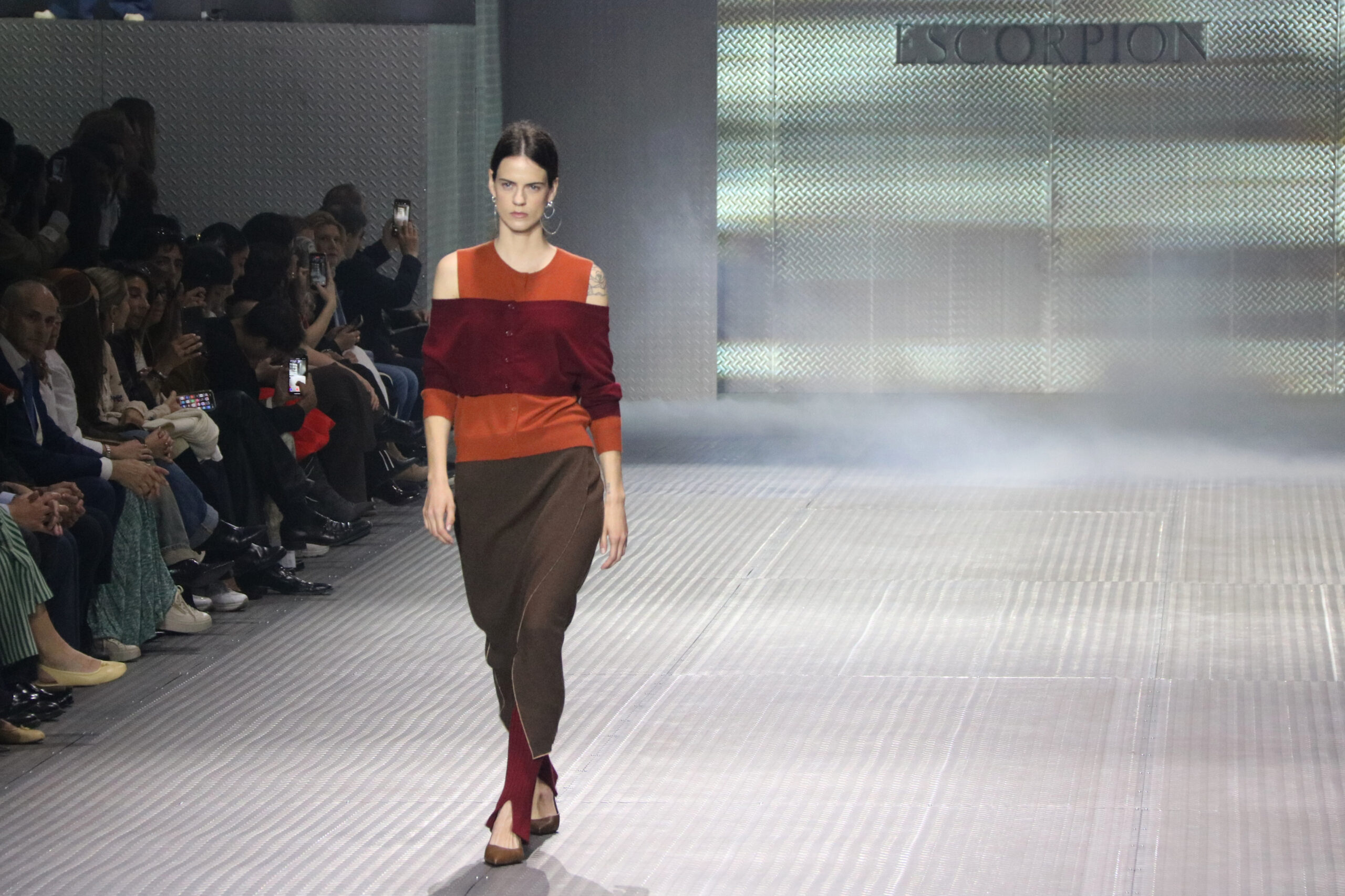 Pel que fa a la desfilada d’Escorpion, ha presentat una proposta de peces de punt que abasten des d’abrics i jaquetes fins a jerseis, càrdigans i vestits. La paleta cromàtica l’han protagonitzat sobretot els colors terra i verds i també el vermell.