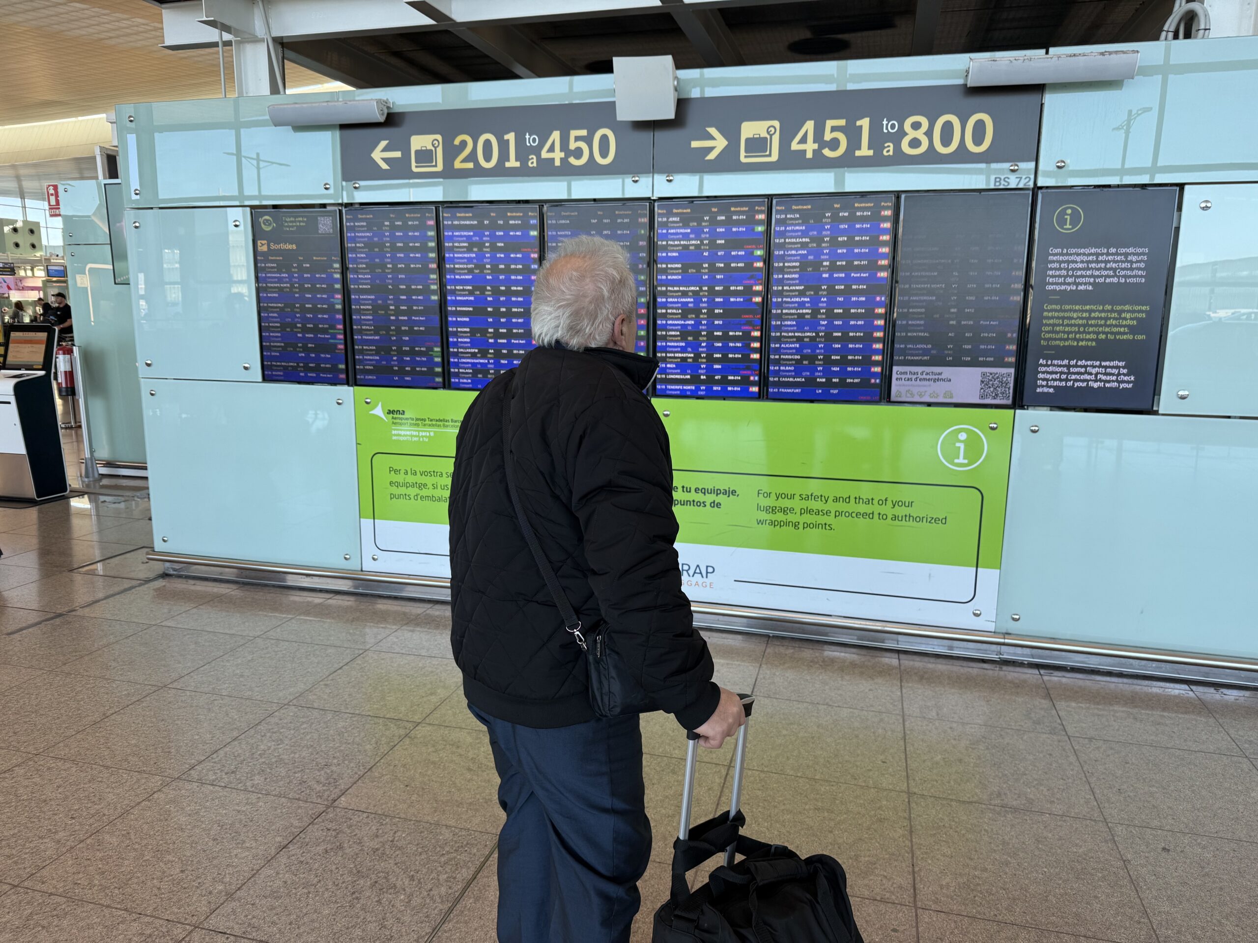 ACN El Prat de Llobregat – L’aeroport del Prat està vivint un matí complicat per les fortes ventades. Passades les 12 del migdia, segons ha informat Aena, s’han cancel·lat 91 vols amb origen o destinació a l’aeròdrom de la capital catalana, i 10 més s’han desviat a aeroports alternatius. Les fortes ratxes de vent han obligat a fer revisions constants de les pistes per garantir que cap objecte posi en risc les operacions. Aquestes revisions, ha explicat Aena, poden fer que en moments puntuals s’hagi d’operar amb pista única el que, donades les limitacions operatives existents, ha de ser suficient per absorbir tot el trànsit previst. En total, la infraestructura ha pogut operar 170 vols i té pendents 635 moviments programats.
