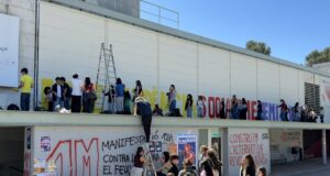 Estudiants de la UAB tornen a pintar el mural gegant esborrat...